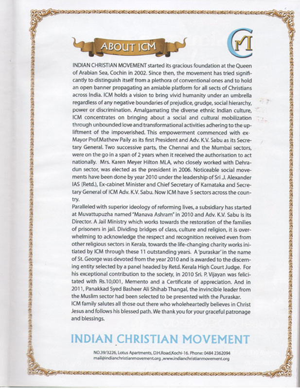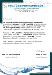The main vision of Indian Christian Movement is to unite the different factions of Christian community to a common goal of love each other.