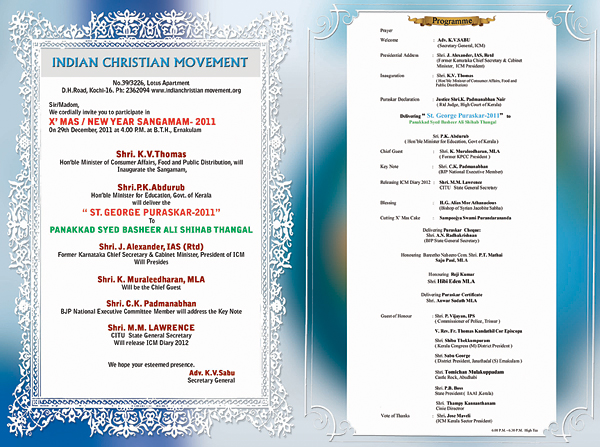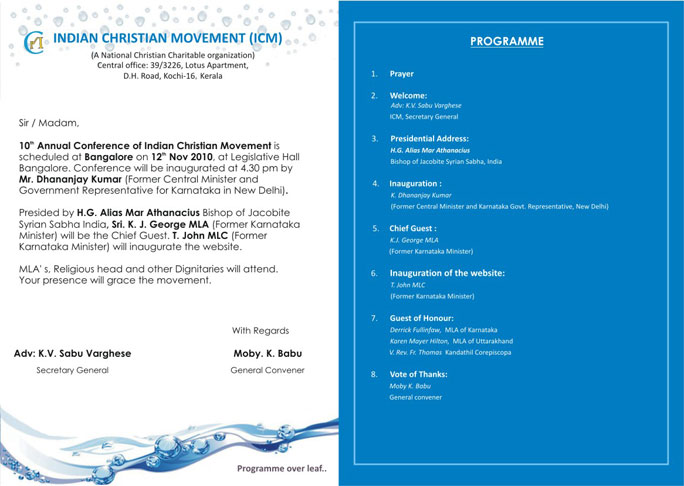 Our main mission is for religious freedom, national unity, unity among Christians, national developments and prompting the Indian Christians to the main stream of national developments.