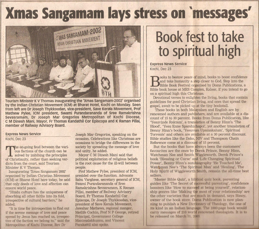 Tourism Minister K V Thomas inaugurating the Xmas Sangamam-2002 .... read more